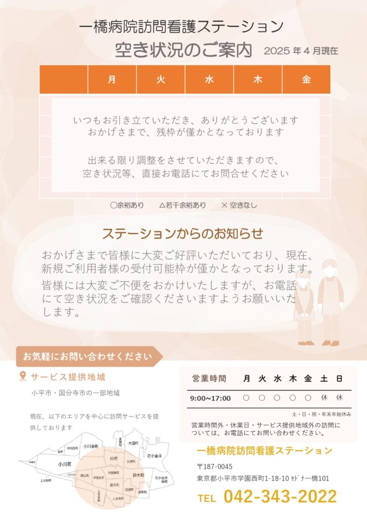4月の空き状況をアップしました [ 2025年4月15日 ] https://hitotsubashi.tmg-houmonkango.jp/wp/wp-content/uploads/sites/6/2025/04/370f42cd58435bdc3d5ad5b4d93cc090.jpg